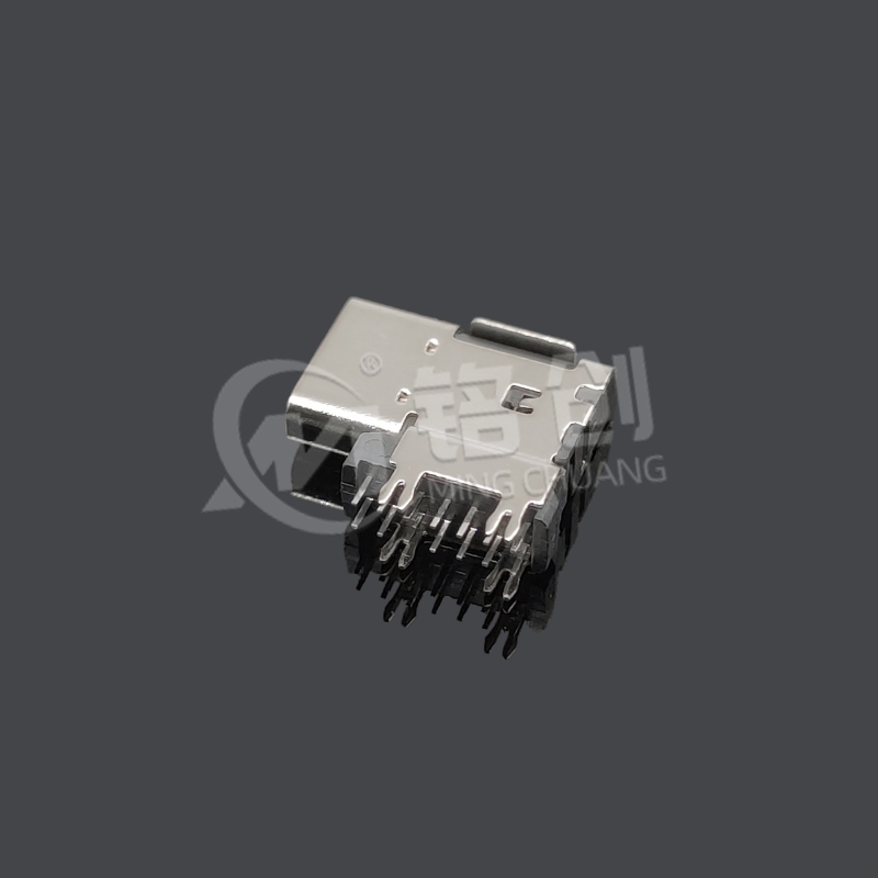 本产品采用侧插式安装设计,垫高高度 CH=7.2mm,适配超薄设备的侧边接口布局。14PIN 结构支持 USB 2.0 数据传输(480Mbps)及 5V/3A 供电,鱼叉脚设计增强 PCB 焊接强度,带翅膀的外壳结构提供额外机械固定,防止插拔时晃动。端子采用 201 黄铜材质,表面镀金 3μm,接触阻抗<50mΩ;黑胶(环氧树脂)灌封工艺提升防水防尘性能,适用于消费电子、智能家居、工业控制等场景,符合 RoHS 环保标准。