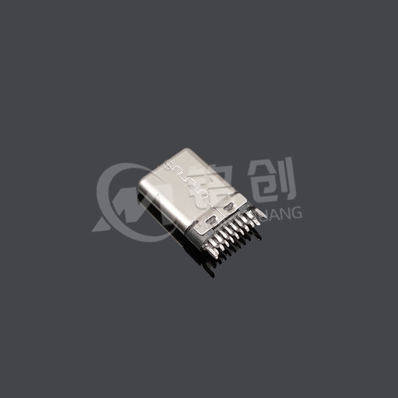 TYPE C 公头 16PIN 夹板 0.8 铆合 有接地是高可靠性全功能连接器,16PIN 布局支持 USB2.0(480Mbps)及 PD 3.0(60W)快充,0.8mm 不锈钢夹板通过冷铆工艺与外壳一体成型,抗拉力≥8N。带接地卡勾设计(接地电阻≤10mΩ)实现高效 EMI 屏蔽(≥50dB),拉伸不锈钢外壳抗冲击能力达 50kgf。整体长度 10.8mm,支持正反盲插及 10000 次插拔寿命,适用于工业控制、车载设备等对电磁兼容性要求高的场景。