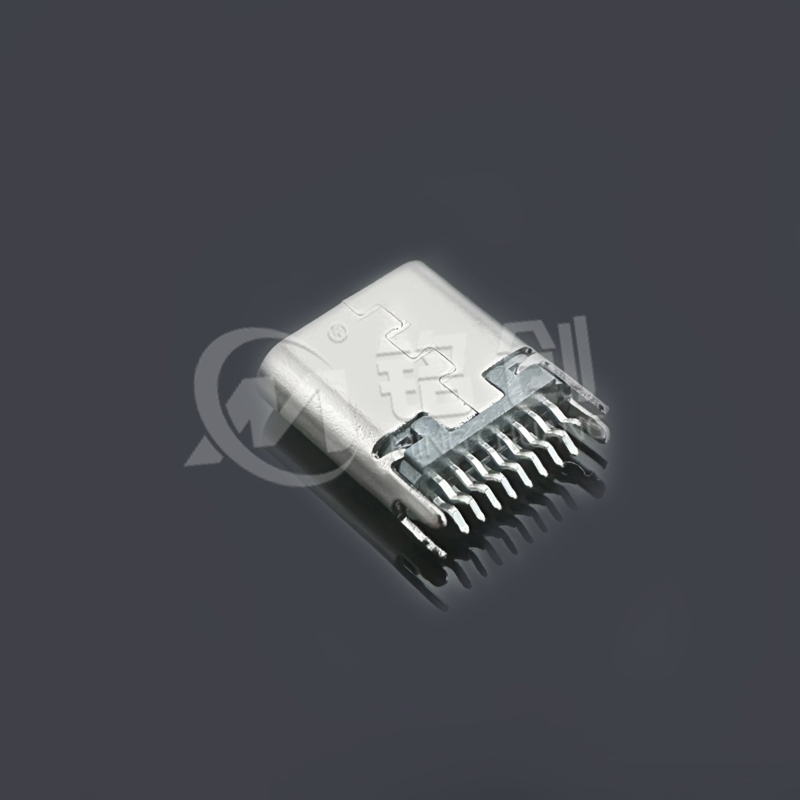 TYPE C 母座 16PIN 夹板 0.8 L=8.6 带鱼叉脚 针长 2.0 三模 无弹 黄铜 LCP是专为高密度 PCB 设计的全功能连接器,16PIN 布局支持 USB3.1 GEN2(10Gbps)高速数据、DisplayPort Alt Mode(4K 视频)及 PD 3.0(100W)快充。0.8mm 超薄夹板适配紧凑型设备,2.0mm 鱼叉脚(四脚设计)提升焊接强度 50%,三模成型工艺(冲压 + 注塑 + 组装)确保针脚精度(公差 ±0.015mm)。黄铜端子镀金 3μm,LCP 绝缘体耐 260℃高温,无弹片结构降低接触失效风险,适用于笔记本电脑、扩展坞、工业控制等高端场景。