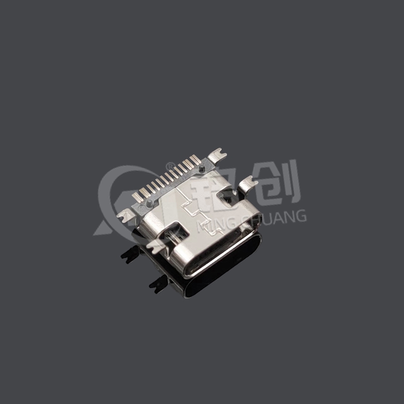 采用板上四脚全贴 SMT 设计,整体长度 7.35mm,适配高密度 PCB 布局。16PIN 全功能配置支持 USB3.1 Gen2(10Gbps)、DisplayPort 1.4(4K@60Hz)、USB PD 3.1(28V/5A,140W)三模协议,集成高速数据传输、高清视频输出与大功率供电。端子使用 C194 高导铜合金(导电率≥85% IACS)镀金 5μm,外壳为 LCP(宝理 E5008L)三次注塑成型,适用于消费电子、工业控制、汽车电子等场景
