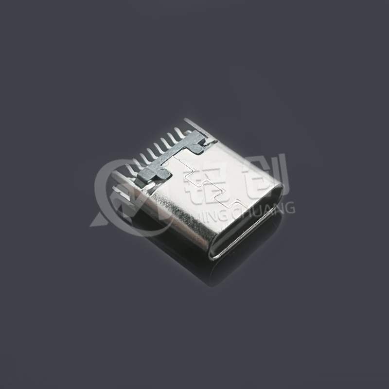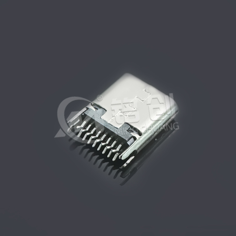 TYPE C 母座 16PIN 夹板 0.8 L=8.6 带鱼叉脚 针长 2.0 三模 无弹 黄铜 LCP是专为高密度 PCB 设计的全功能连接器,16PIN 布局支持 USB3.1 GEN2(10Gbps)高速数据、DisplayPort Alt Mode(4K 视频)及 PD 3.0(100W)快充。0.8mm 超薄夹板适配紧凑型设备,2.0mm 鱼叉脚(四脚设计)提升焊接强度 50%,三模成型工艺(冲压 + 注塑 + 组装)确保针脚精度(公差 ±0.015mm)。黄铜端子镀金 3μm,LCP 绝缘体耐 260℃高温,无弹片结构降低接触失效风险,适用于笔记本电脑、扩展坞、工业控制等高端场景。