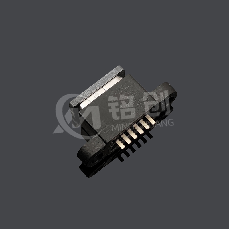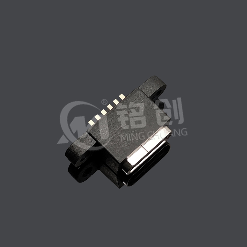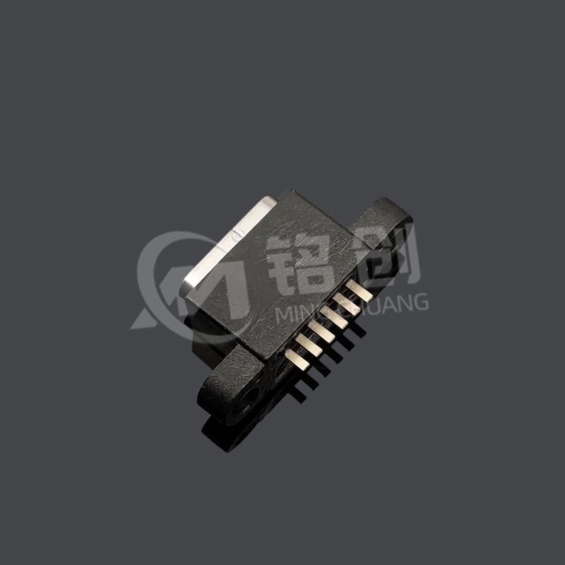 本产品采用双排 SMT 紧凑型设计,适配立插式安装(高度 L=7.9mm),支持 USB2.0 数据传输(480Mbps)及 PD 3.1 快充协议(20V/5A,100W)。双耳螺丝定位孔结构提供双重机械固定,不锈钢外壳镀镍处理,抗腐蚀性能提升 3 倍。通过 IPX7 防水认证(1 米水深浸泡 30 分钟),兼容 - 40°C 至 85°C 宽温工作环境,适用于车载充电桩、工业控制设备、户外智能硬件等场景。产品符合 RoHS/ELV 环保标准,插拔寿命达 10 万次以上,满足 IEC 62680-1-3:2022 国际规范。